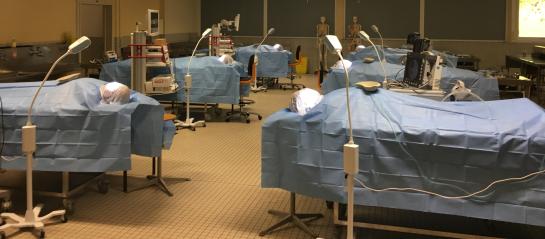The anatomy dissection laboratory ready for practical demonstration.